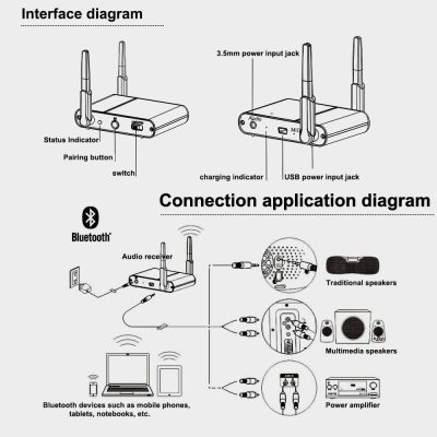 Egyszerű csatlakoztatás, párosítás és lejátszás. Csatlakoztasd a számítógép hangszóróit, otthoni sztereó rendszert vagy más hangszórórendszert a 3,5 mm-es vagy RCA kábellel, majd párosítsd a Bluetooth audioeszközökkel, például okostelefonokkal vagy táblagépekkel. Ez a termék csak vevő, NEM adó.