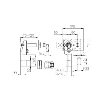 • Csatlakozó méret: DN40/50