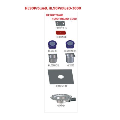 • HL 90PRBLUED alacsony padlólefolyó DN 40 vízszintes kimenettel és Primus Blue szifonnal, 115x115mm ráccsal