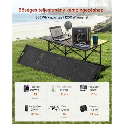 Hordozható erőmű 1200W + 200W napelem – 806 Wh LiFePO4 napelemes generátor szett