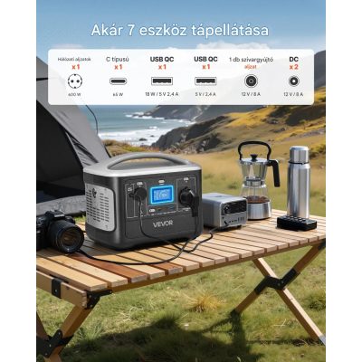 • Hordozható erőmű 600W, 493Wh LiFePO4 – kompakt napelemes generátor 7 kimenettel
