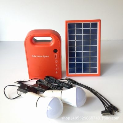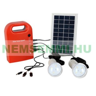 • Hordozható nagy teljesítményű napelemes Solar Power Bank rendszer panel 2 LED izzóval a kempingezők részére