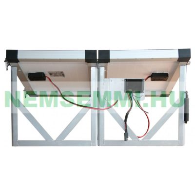 A két napelem össze van kötve és csatlakoztatva van egy töltésszabályozóhoz, amely a napelemek hátuljára van illesztve.
