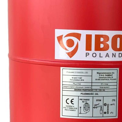 IBO HEATS 36L tágulási tartály falra szerelhető kivitelben fűtési és napkollektoros rendszerekhez. Cserélhető EPDM gumimembránnal és horganyzott 3/4" -os csatlakozóperemmel. A glikol tartalom nem haladhatja meg az 50%-ot.