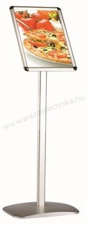 • Dekoratív infoállvány, egy mozdulattal álló/fekvő pozícióba állítható alu keret+ alu szár+porszórt talp;