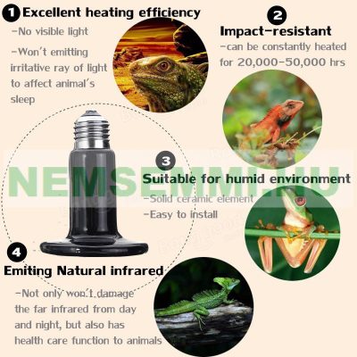 • Infra fényű lámpa E27 foglalattal 200W izzó terrárium fűtés