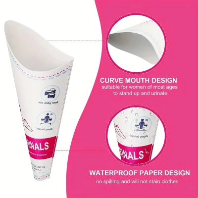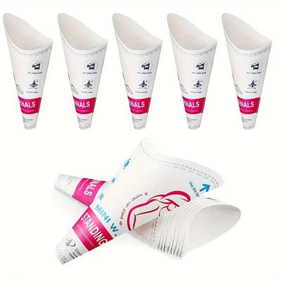 Nők számára tervezett, egyszer használatos vizeletürítő eszköz, amely lehetővé teszi az állva pisilést bármilyen helyzetben – legyen szó utazásról, túrázásról, kempingről vagy higiéniai szempontból kifogásolható nyilvános mosdókról. Kerüld el a kellemetlen fertőzéseket és a higiéniai problémákat a nyilvános mosdókban, fesztiválokon, pályaudvarokon vagy egy utazás során! Ez a praktikus, papírból készült pisilő tölcsér lehetővé teszi, hogy állva végezd el a dolgod anélkül, hogy érintkeznél koszos felületekkel vagy beszennyeznéd a ruhádat.