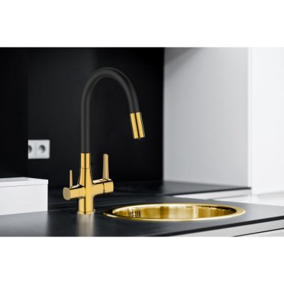• Invena Glamour konyhai csaptelep flexi kifolyócsővel, pult alá szerelhető IVÓVÍZ SZŰRŐVEL, fekete-arany