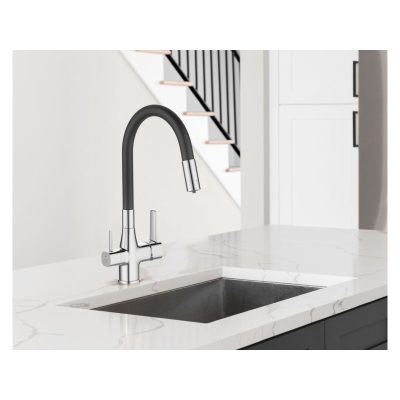 • Invena Glamour konyhai csaptelep flexi kifolyócsővel, pult alá szerelhető IVÓVÍZ SZŰRŐVEL, fekete-króm