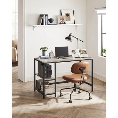 Íróasztal 120x60 cm, számítógépes asztal 2 polccal bal vagy jobb oldalon, greige