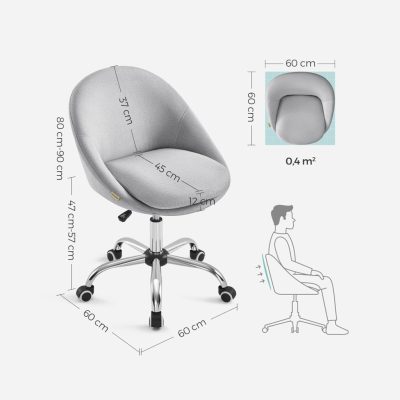 Homeoffice Forgószék, Asztali szék, Hab párnázás, Állítható magasságú, dolgozószobához, hálószoba, szürke: