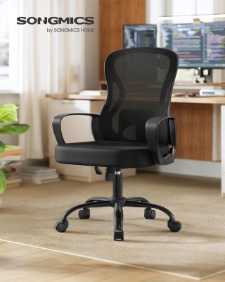 SONGMICS Irodai Szék Ergonomikus Hálós Forgószék, Íróasztal Szék Deréktámasz, Lengő Funkció, Kartámaszok, Tanulószoba/Hálószoba, Tinta Fekete