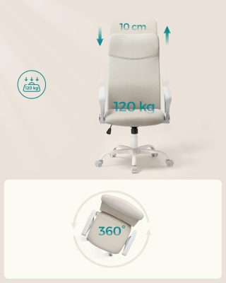 SONGMICS irodai szék, ergonomikus szék, forgó ülés, párnázott ülőfelület, állítható magasság és dönthetőség, teherbírás 120 kg, cappuccino bézs színben