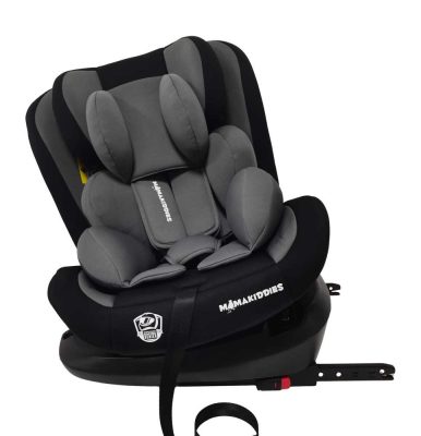 ISOFIX-es 360°-ban forgatható Mama Kiddies Racing biztonsági autósülés (40 -125 cm) fekete-szürke színben + Ajándék fejvédő párna