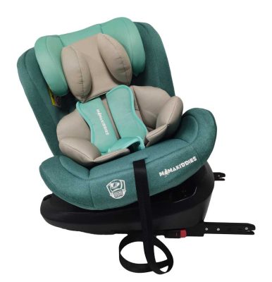 ISOFIX-es 360°-ban forgatható Mama Kiddies Racing biztonsági autósülés (40 -125 cm) zöld színben + Ajándék fejvédő párna