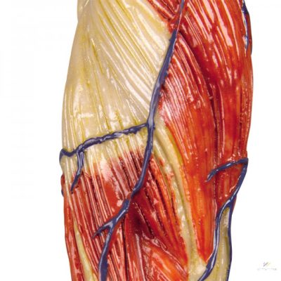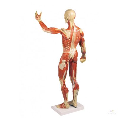 Ez az izmos figura rendkívüli finom struktúrákkal és nagyon részletes festéssel rendelkezik. Az egyik oldalon a felszíni izomzatot, a másik oldalon a mélyizmokat mutatja. Mindkét karja levehető. Fontos felszíni erek is ábrázolva vannak. Tökéletes eszköz a betegoktatáshoz, sport- és fitneszstúdiókban, valamint fizioterápiában is. Prémium minőség.