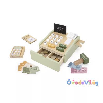 • Játék Fa Pénztárgép - zöld pasztell színben