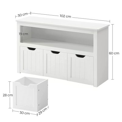 • Gyerekbarát kialakítás- Gyermeke könnyedén kiveheti a 3 dobozt - mindegyik 4 kerékkel - a kivágások segítenek elkerülni a kéz csípését, a gyerekpolc 60 cm magas, így gyermeke könnyen elérheti a játékait