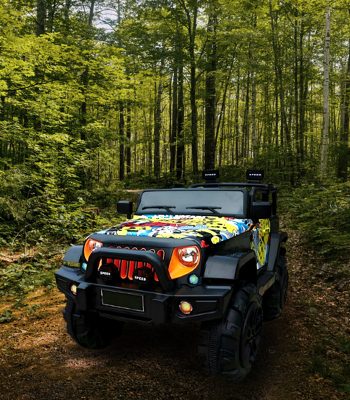 Menet közben a kicsi kedvenc zenéit tudja hallgatni. A jármű LED fényekkel van felszerelve, melyek menet közben világítanak.