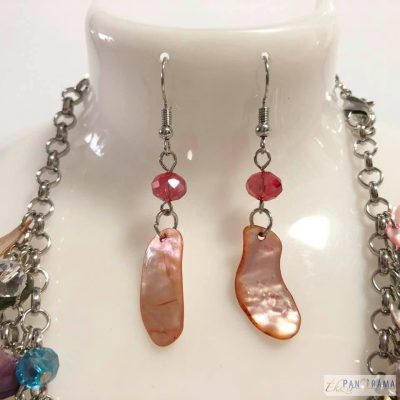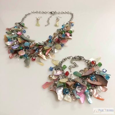 • Kagylóból készült nyakék, fülbevaló és karkötő szett színes