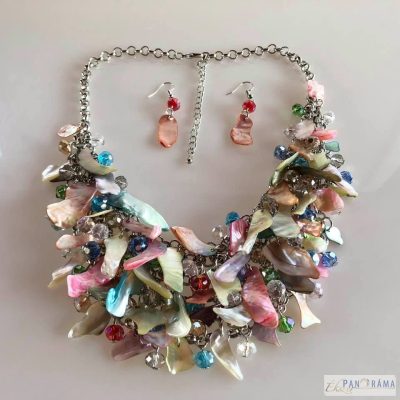 • Kagylóból készült nyakék, fülbevaló szett - színes