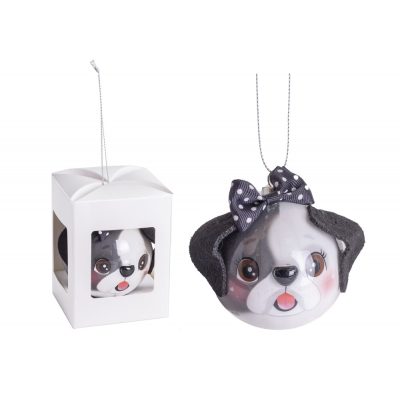 Karácsonyfa gömb kutya fej fekete poly