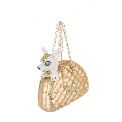 Karácsonyfadísz csivava táskában 9x8cm