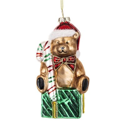 Karácsonyfadísz maci dobozon 13x5cm