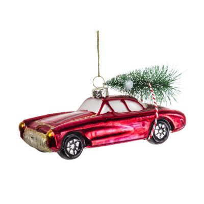 Karácsonyfadísz piros autó 5x5x12cm