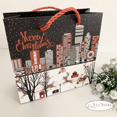 Karácsonyi város mintázatú, zsinóros dísztasak , vastag, jó minőségű.