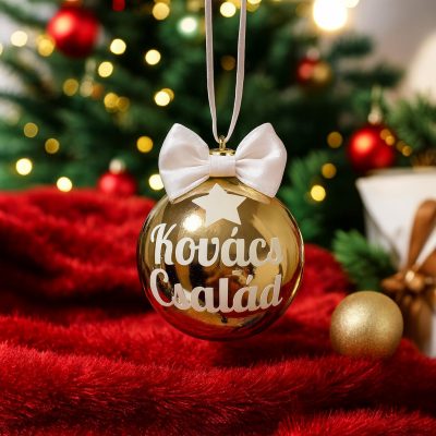 Egyedi feliratos karácsonyi gömb, mely igazán jól mutat a család karácsonyfáján! Klasszikus szines gömbökre készítjük el neked az egyedi feliratod!