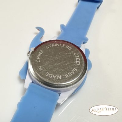 Gyerek karóra, 3D dínó mintás, kék szilikon szíjjal, fehér számlap színes számokkal, mutatókkal, acél hátlap