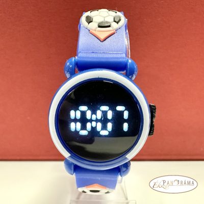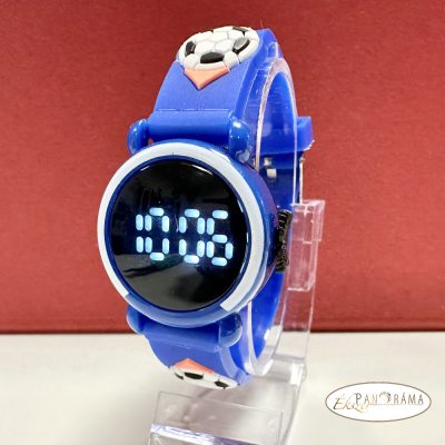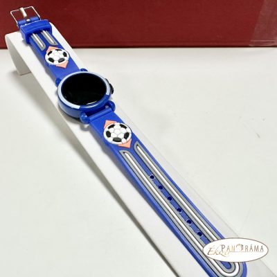 Gyerek karóra, 3D focis szilikon szíjjal, fekete digitális kijelzővel, fehér számokkal, műanyag hátlappal!