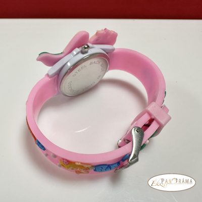Gyerek karóra, 3D kis hableány mintás, rózsaszín szilikon szíjjal, fehér számlap színes számokkal, mutatókkal, acél hátlap.