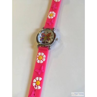 Gyerek karóra virág és pillangó mintás szilikon szíjjal, pillangó mintás számlapja ezüst fém foglalatban, színes mutatókkal. Minden kislány örömmel veszi ezt az ajándékot! Olcsóbb születésnapi, névnapi ajándéknak, egy gyerekzsúr alkalmával is kitűnő meglepetés!