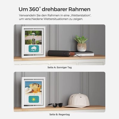 Forgatás, megjelenítés és díszítés:A forgó keretben 2 kristály található, amelyek mindkét oldalán egy-egy fényképet jelenítenek meg.Modern megjelenés, fehér szemcsés felület: a keretek beleolvadnak a különböző belső stílusokba.