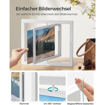 2 képkeretből álló készlet, forgatható, 20,3 x 25,4 cm (8 x 10 hüvelyk) fényképekhez, 2 üvegvédővel, álló vagy álló helyzethez, MDF tábla, fehér: