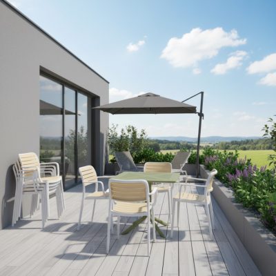 A DENTON NEW zöld kerti asztal stílusos megjelenést és tartósságot kínál minden kültéri tér számára. Könnyű, mégis robusztus szerkezetének köszönhetően könnyen mozgatható, mégis ellenáll az időjárás viszontagságainak. Ideális választás bármilyen kerti összejövetelhez vagy családi vacsorához a szabadban.