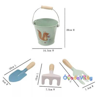 Kerti szerszámok vödörrel. Elengedhetetlen kellék a homokozáshoz.