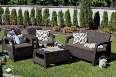 A KETER CORFU egy nagyon modern és kényelmes, kül - és beltéren egyaránt használható bútor garnitúra. A polyrattan anyag ellenáll az időjárás viszontagságainak. A csomag tartalmazza a kényelmes párnákat is.