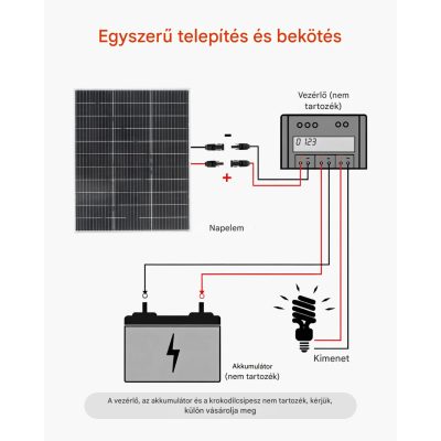 A csomag 2 darab 100 W-os napelemet tartalmaz, így összesen 200 W teljesítményt biztosít, amely ideális kisebb rendszerekhez vagy bővítéshez.