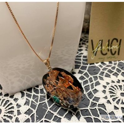 • Kézműves, egyedi medálos Gold filled nyaklánc - Black- Gold