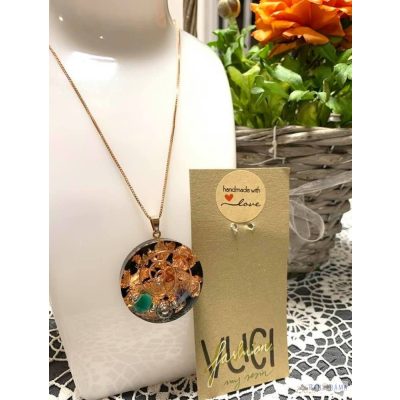 Kézműves, egyedi medálos Gold filled nyaklánc - Black- Gold