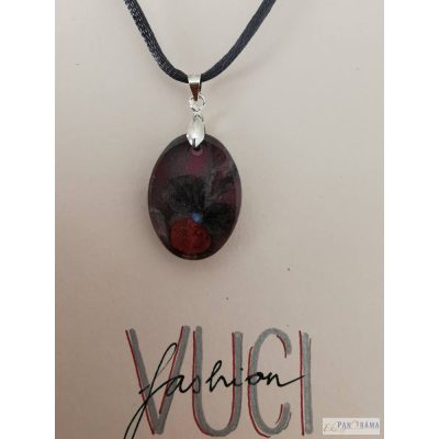 A z ovális medál száraz virággal, közepében apró csillámmal díszített. Nkkel mentes ezüst színű fém szerelékkel és zsenília lánccal!