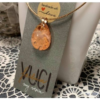 Kézzel készített egyedi medál, aranyló csillogással a vaddohány különlegességével.
