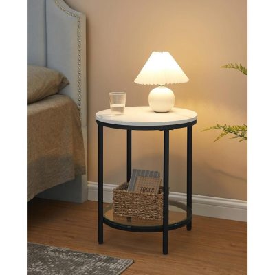 • [Egyszerű, de stílusos] A klasszikus fekete keret és a letisztult vonalak a tiszta minimalizmust testesítik meg.Ezenkívül a fehér márvány megjelenésű asztallap és üvegpolc egyedi karaktert kölcsönöz szobájának