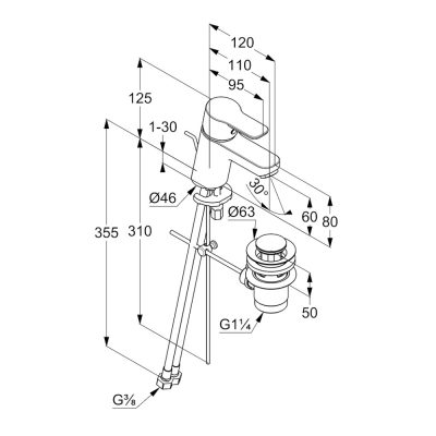 • KLUDI Pure&Easy 60 mosdócsaptelep automata leeresztő szeleppel