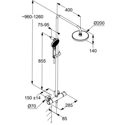 A felszállócső vízszintesen és függőlegesen egyaránt állítható, és a kézizuhany tartó is a felhasználói igény szerint állítható. Ha a kézizuhanyt szeretnénk használni akkor a zuhanyszetten található szelepet hátra kell fordítani. Amennyiben pedig a felső fejzuhanyt használnánk, akkor ezt a szelepet előre fordítsuk. A fogantyú 38 C°-ra beállított forrázásvédelemmel van ellátva.