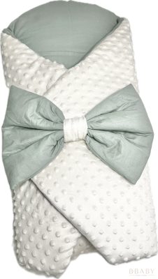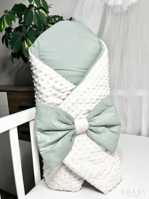 Kókuszpólya Joey – Krém minky és olívazöld pamut, 80×80 cm | Uniszex, masnis, kókuszbetéttel