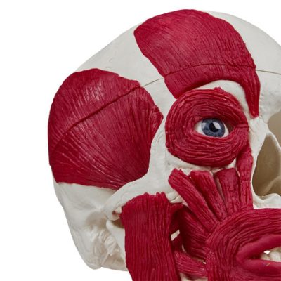 Ez a lenyűgöző modell egy emberi koponyát ábrázol, amelynek egyik felén a legfontosabb fejizmok találhatók. A koponya a 4500-as cikkhez hasonló, az állkapocs nem mozgatható. A koponyasapka kinyitható és eltávolítható.